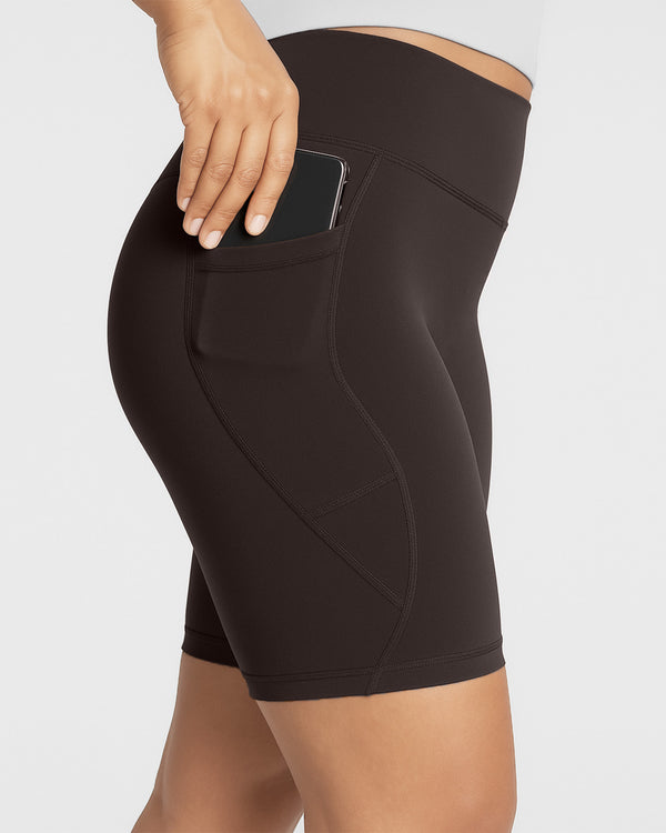 Dena Recycled Biker Shorts Met Zakken - Espresso
