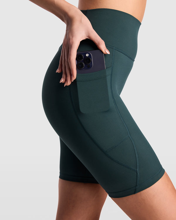 Dena Recycled Biker Shorts Met Zakken - Pine Groen